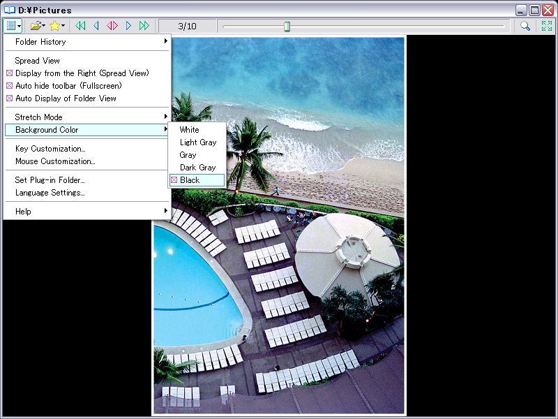 SpReader is a simple but powerful image viewer that helps you open and view images in many formats. It can even handle displaying photos from ZIP archives. You can add plugins, folder shortcuts and bookmarks, view images full screen or enlarge them. The main window offers some controls so you can go to the first or last, next or previous photo from the uploaded directory. The CPU and RAM usage is quite low, so it won't put too much strain on your computer.