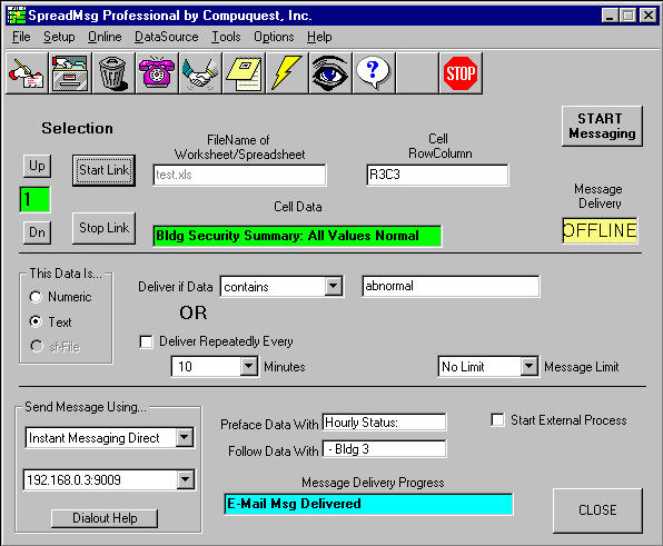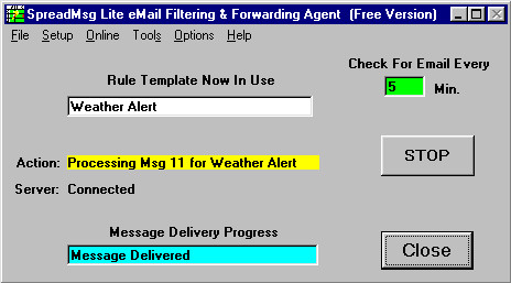 SpreadMsg Lite allows you to automatically send messages to a pager, mobile phone, PDA or email. Various rules can be set up in the program to filter out junk mail so that only important messages or notifications arrive on the mobile phone.