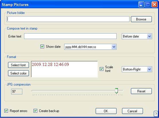 StampPictures is the easiest way to write text in an image or mark the date of a photo creation with a choice of custom fonts and colors.