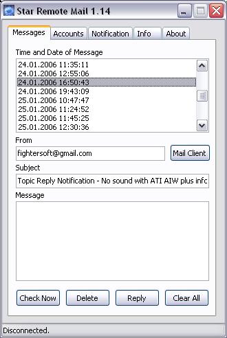 Star Remote Mail is a useful program that notifies you of new incoming emails. The program is located in the system tray and displays a message, plays a selected sound or can automatically launch the selected application.