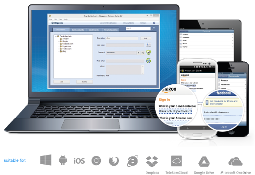 Steganos Safe keeps your sensitive data under lock and key. On PCs, on networks and in the cloud. Creates highly secure folders for your files.