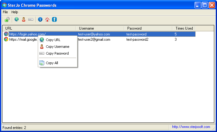 SterJo Chrome Passwords is a small tool capable of revealing all passwords and usernames stored by Google Chrome . For each password, it will show the URL and the number of times it has been used.