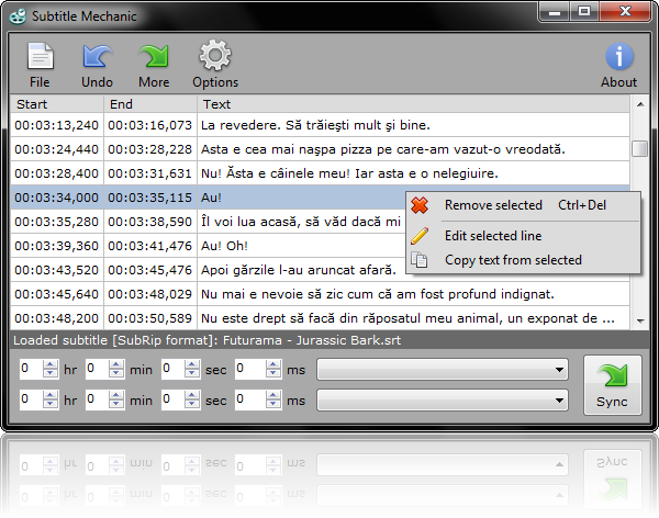 Subtitle Mechanic is an auxiliary utility used to edit and time-synchronize movie subtitles. Subtitles are supported in SRT and SUB formats. You can synchronize and convert SubRip (.srt) and MicroDVD (.sub) subtitles.