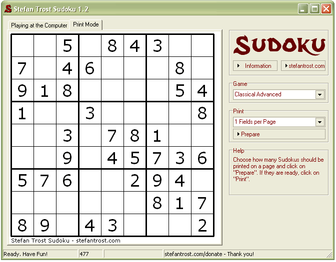 Play the popular Sudoku on your computer. Compare your results with other players!