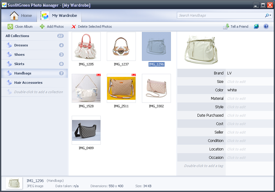 SunlitGreen Photo Manager is a completely free tool you can use to organize, browse and tag your digital photos. You can easily group photos into albums or collections and quickly search through them. It supports the creation of an unlimited number of photo albums. The interface of the program is very friendly, clear and will be easy even for beginners.