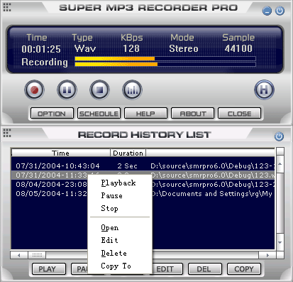 Super Mp3 Recorder is able to automatically detect the formats supported by your sound card and adjust the program parameters for the best possible result. Your recordings are then saved to Mp3 or Wavu.