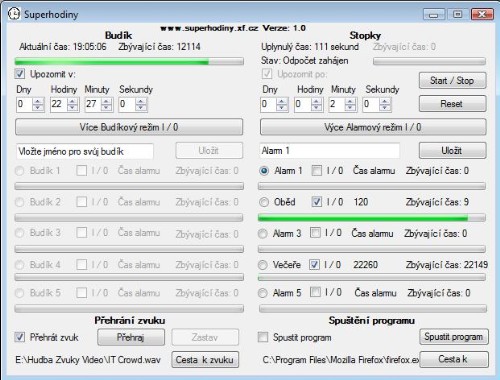 Up to 5 alarms and stopwatches can be set in the program. Both parts ( Stopwatch and Alarm ) are able to work independently of each other )