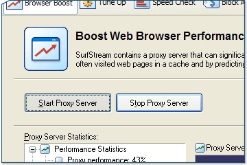 SurfStream includes a set of integrated tools for monitoring speed and working with the Internet. It speeds up your internet communication, checks your connection speed, blocks pop-ups and banners, optimizes TCP/IP settings for better internet experience and includes other features.
