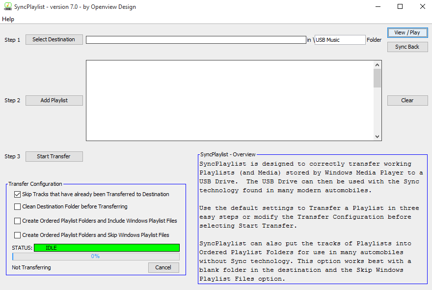 SyncPlaylist is designed to synchronize, copy, transfer Windows Media Playlists to a USB flash drive. The tool allows you to select a specific location and automatically searches for all WMP playlists.