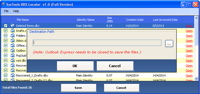 SysTools DBX Locator is a tool that is used to automatically detect DBX files (Outlook Express). It recovers corrupted DBX files and saves them to the local disk. The program is able to automatically list the found DBX files with their attributes. An important requirement for proper operation is a completed installation and configuration of the Microsoft Outlook Express office application.