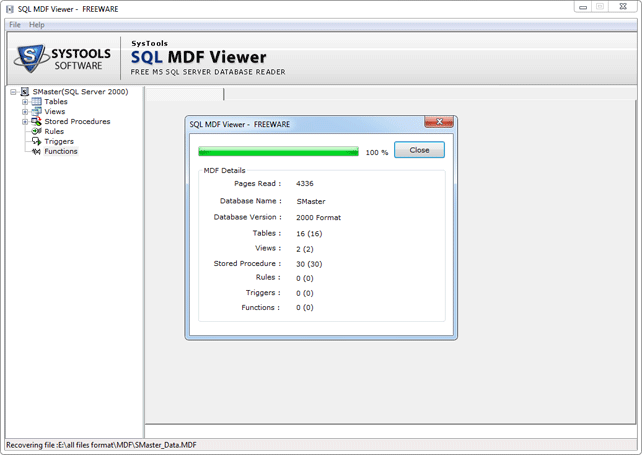 If you have an MDF file but no MS SQL Server environment on your computer, then MDF Viewer will help to open and view the file. It allows you to open any type of MDF file, whether it is corrupted or otherwise inaccessible.