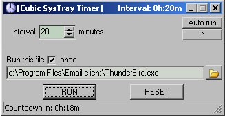 SysTray Timer is a simple and useful utility that allows you to run selected applications at a specified time. You set the path of the application to be started or run at a certain interval (e.g.: alarm).