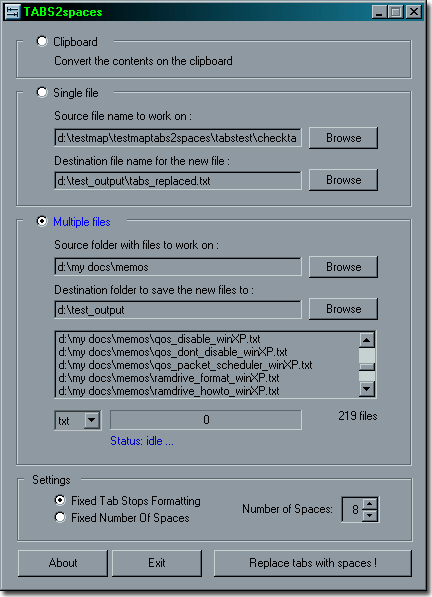 TABS2spacesthis program replaces tabs in a text file after a user-defined number of spaces (space character).