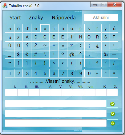 The program is designed to make your work with typing text as easy as possible. If you often switch the En/Cz keyboard or need to type a special character or copy text, you will certainly welcome the function of quick copying of various characters and texts into your form. It was also the intention that you find as many characters as possible in one place.