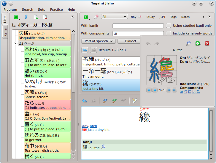Tagaini Jisho is an open-source Japanese dictionary that will help you in teaching and learning Japanese. The program includes Japanese writing tutorials, including stroke animations.