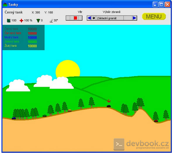 In Tanks, each player gets a tank and they take turns shooting at each other. They have many different types of weapons and tank modifications to choose from. In the game they even destroy terrain (after being hit by a bomb).