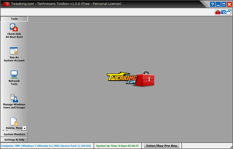 Technicians Toolbox is a collection of powerful tools to help Windows users. Many of these tools were built with making certain repairs, cleanups and tasks easier, faster and better. More and more tools will be added to the program over time. Many of these tools have so many options, controls and features that they could be complete programs on their own. But the goal was to have everything in one place. Instead of repeating all the tools and what they can do, you can see the online help for the program.