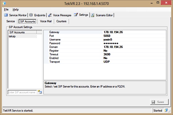 TekIVR is a program that functions as an interactive voice software for Windows that offers calling. You can set an IP address, for incoming calls and a default SIP proxy for outgoing calls. You can also record session details and errors in log files.