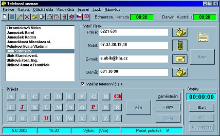 The phone book program does not claim to be some universal database. It is what its name says it is. It was developed for the needs of a small business or private individual.The basic division of the database is into three separate sections : Employment - Companies - Private. This division allows for a clearer layout and easier number lookup. For each subscriber there are four fields - home, work, mobile plus E-mail address.