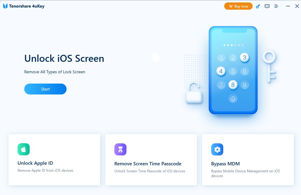 Forgetting your iPhone passcode or Apple ID password can be a hassle. With 4uKey iPhone Unlocker, you can recover your iOS device. It doesn't matter whether it is a 4-digit/6-digit passcode, custom numeric passcode, alphanumeric passcode, Touch ID or Face ID, Tenorshare 4uKey iPhone Unlocker is able to remove it in minutes.