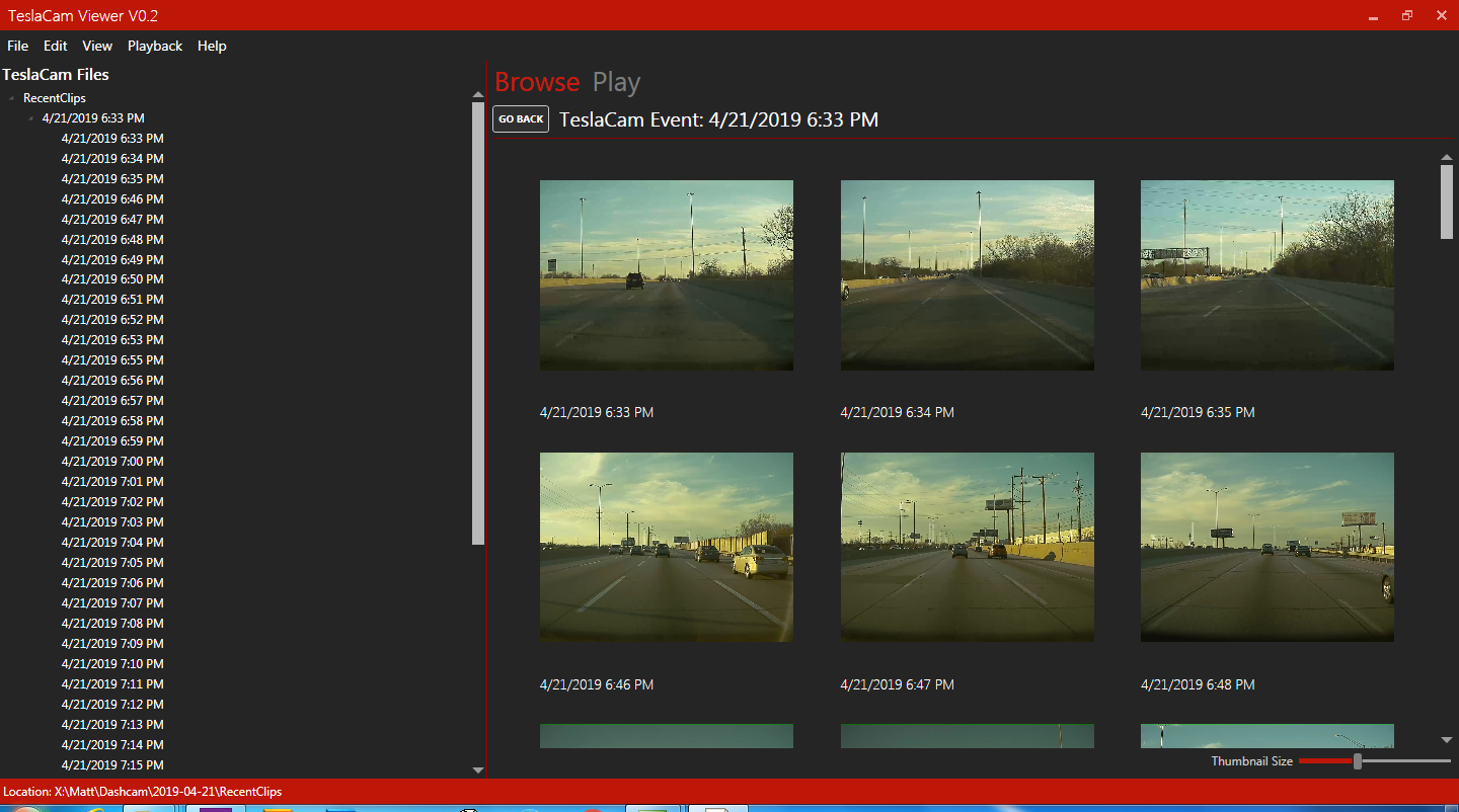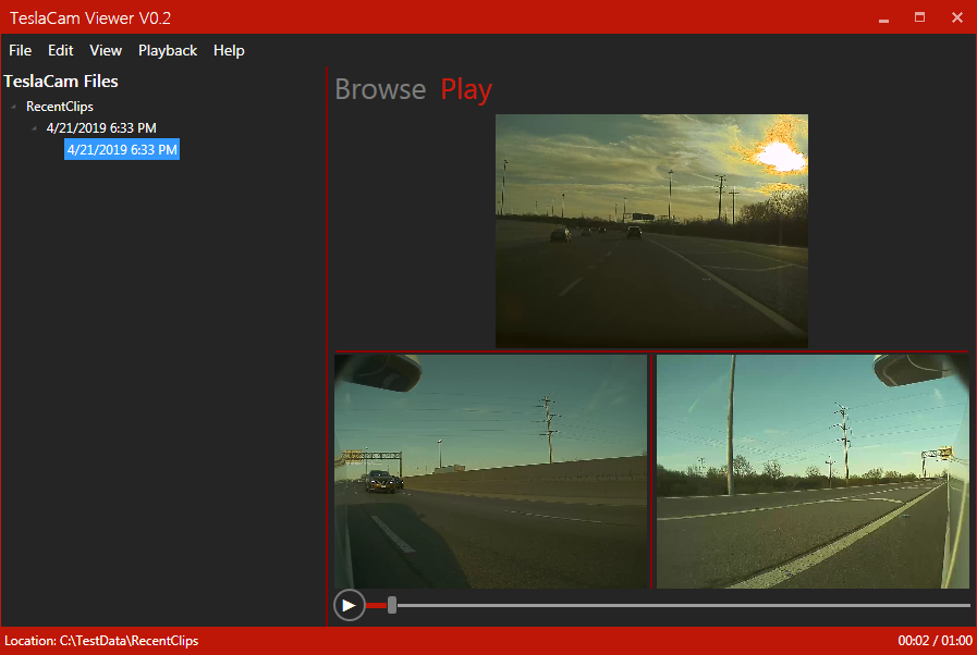 TeslaCam Viewer is a simple recording viewer for easy sorting of recordings and viewing all cameras at once.