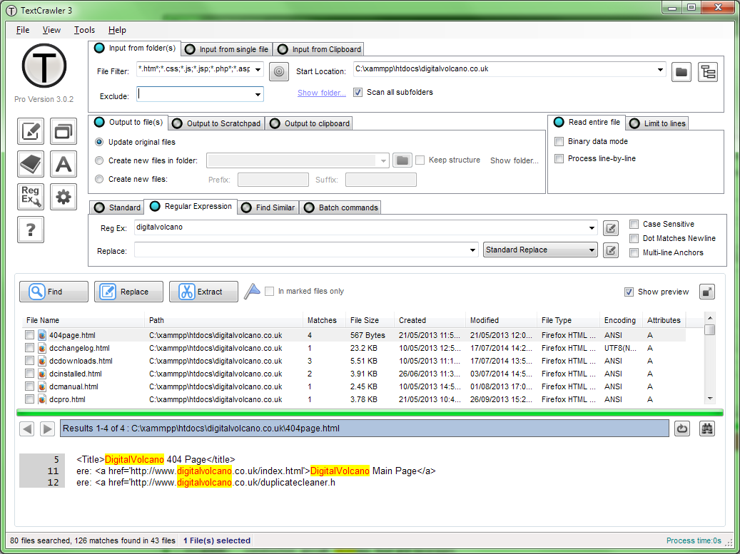 TextCrawler Pro is a fantastic tool for anyone who works with text files. This powerful program allows you to instantly find and replace words and phrases in multiple files and folders. It uses a flexible module that allows you to create sophisticated searches, replace thumbnails, perform batch operations, extract text from files, and more. It is fast, easy and powerful to use.