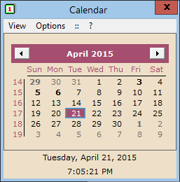 The Calendar is the perfect calendar for your desktop. It is equipped with a variety of useful features, allowing you to set up different forms of calendar display. It also includes other useful features such as easy copying of selected days to the clipboard, display of week numbers, customizable font and background colors, an "always on surface" option, and more.