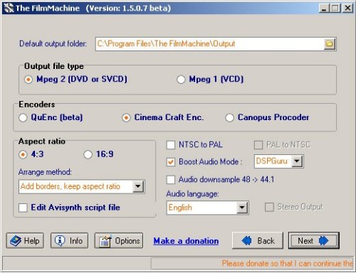 The FilmMachine is a utility that can convert avi video file to (S)VCD, DVD-Video formats quickly and easily. The program also allows you to insert subtitles with support for Czech characters.