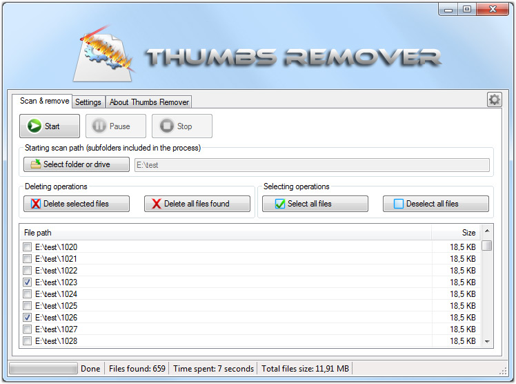 Thumbs Remover is a software designed to scan your hard drive (internal or external), a specific directory, subdirectories, and when finished, display a listing of all found Thumbs.db files with an option for immediate removal. With this tool, you can disable or enable the creation of Thumbs.db files on the system for both local and remote folders.