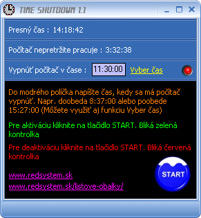 The Time Shutdown 1.0 program can shut down Windows and turn off the computer at a specified time. The time to shut down is entered as H:MM:SS (morning) or HH:MM:SS (afternoon). This simple but very useful program can be used anytime you have a long term process running on your computer, (burning, compiling, grabbing, etc.) you need to leave but don't want your computer to run until you arrive later. In addition to the shutdown feature, you will also learn how long you have had your computer running.