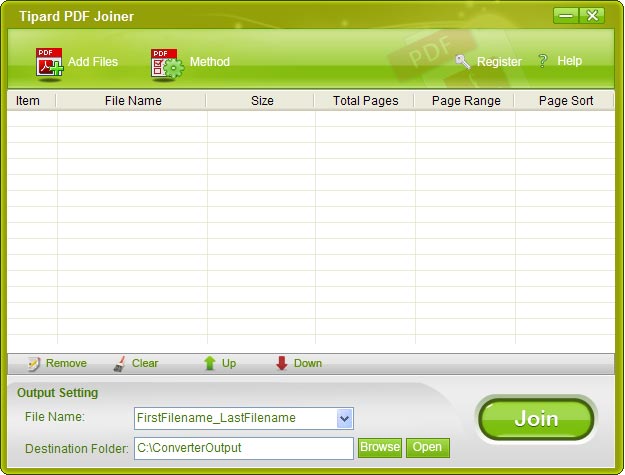 Tipard PDF Joiner allows you to merge PDF files into one PDF. For example, you can merge only even and odd pages, or according to a defined range or order. The operation of the program is simple, just insert the desired files, select what to merge and then click on the Join button.