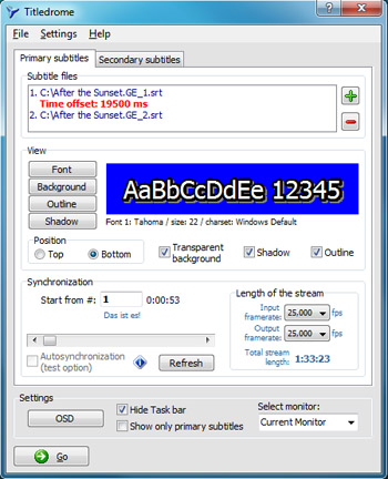 The program supports loading and displaying two subtitle sources at the same time, which can be useful for those who are learning foreign languages. Titledrome has various settings, including changing the speed of subtitle display.