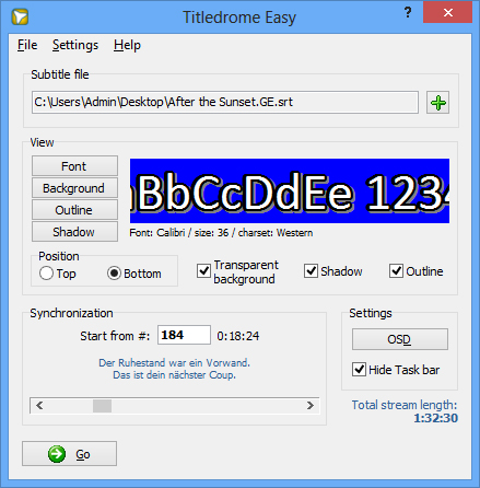 Titledrome Easy has various settings, including synchronization and changing the speed of subtitle display.