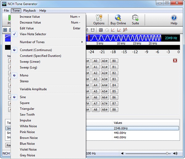 Tone Generator is an easy to use program that can be used as a sine or rectangular audio frequency or signal generator if you want, which can produce audio test tones with different waveforms.