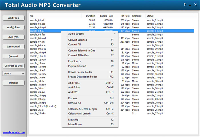Total Audio MP3 Converter has a simple and clean user interface. It does not require special knowledge of audio and video file formats.
