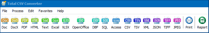 Total CSV Converter is a reliable tool to convert CSV and TSV files to PDF, XLS, XLSX, DBF, XML, JSON, HTML, TXT, DOC and various OpenOffice formats. It has been designed to be convenient and user-friendly.