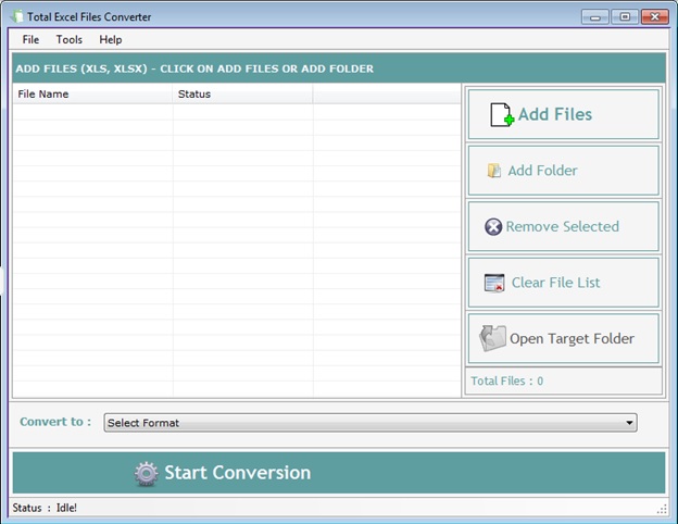 Total Excel Files Converter is a software which is capable of converting Excel files into various other formats such as XLSX. to XLT., XLM. to xls., etc. Also, it can convert all types of Excel files into various other formats like PDF, HTML, TXT, CSV, etc. The software is equipped with amazing features that simplify and speed up the work. It is capable of converting 1000 Excel files into a single format, within seconds.