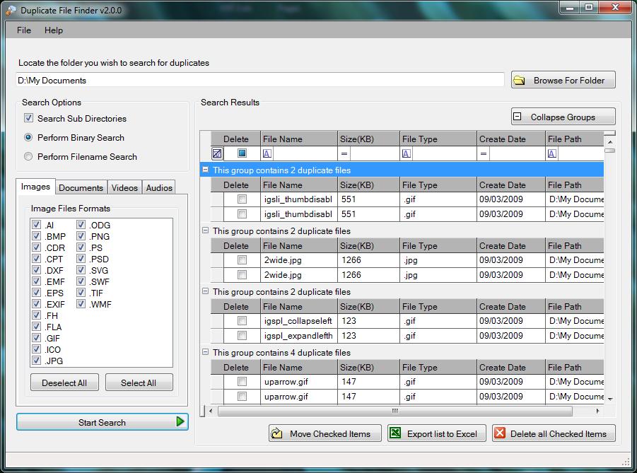 TPD Duplicate File Finder is an application that quickly and easily scans your computer for duplicate files. It supports graphic formats, documents, video and audio formats. You can then delete or move the found duplicate files. Export search results to Microsoft Excel.