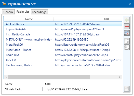 Tray Radio is a great to brilliantly simple application for playing your favourite radios on your PC via streaming from the internet. It allows you to set up your list of favorite radios, which you can then select from by right-clicking on the radio icon. If the radio stream also contains information about the songs played, the program records them in the history. You can also start recording the radio at any time, so you won't miss your favourite song. The program can be set to start when the computer starts and can also start playing your predefined radio right away.