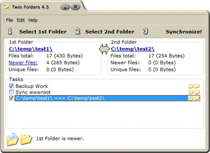 The operation is very simple you select the first folder, the second folder and then just press the sync button.