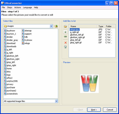 UltraConverter is a fast and easy program for converting up to 100 different graphic formats. The program also offers 10 different effects for editing (rotation, resizing, cropping, reversing, adjusting contrast and brightness, etc.). UltraConverter works with the following formats: BMP, JPG, GIF, PNG, PSD, TIF, JPEG2000, WMF, ICO, CUR, Camera RAW, PCD, JBIG, PDF and many others. It also supports batch image processing.