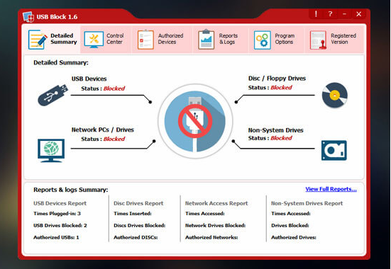 USB Block prevents data theft and leakage of your important files, documents and source codes from devices such as USB drives, CD/DVDs and network computers. You can white-list your own USB drives and devices. If unauthorized devices are found, you will be prompted to enter a password.
