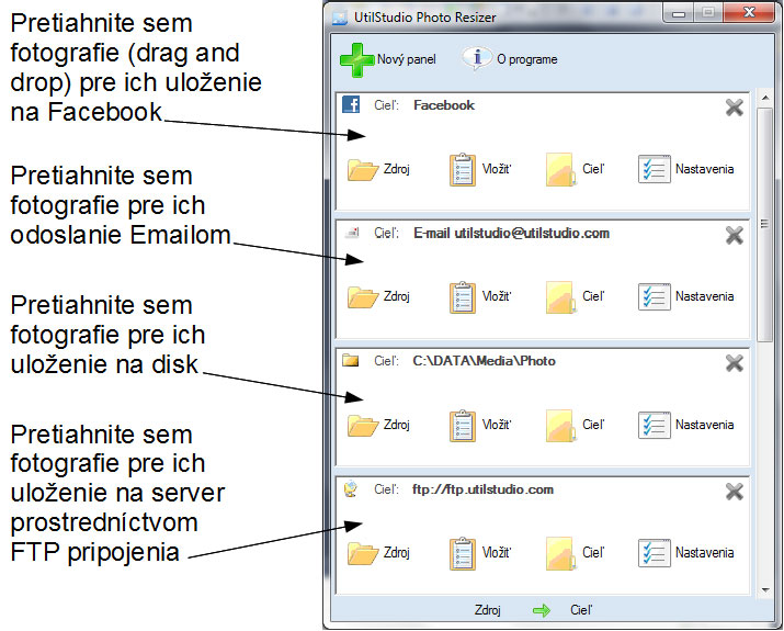The UtilStudio Photo Resizer program can perform a bulk change of images (photos) and save them to one of the selected targets: