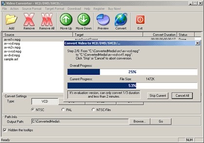 Video Converter is a handy tool to convert video formats (avi, mpg, mov, rm) to VCD, DVD, SVCD. Main features of the program: