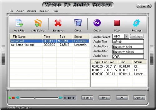 Video To Audio Cutter is a powerful video/audio editor. The program works with video and audio files, converting, splitting and merging them.