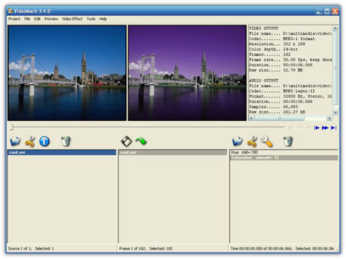 VideoMach is an audio/video editor and converter that lets you create video from still images, add music to video, extract music from movies, and perform conversions between multimedia formats.