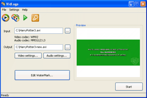 Use VidLogo to easily insert your logo into your video. The logo can also be animated, as the program supports AVI, BMP and JPEG formats for logos. The input video can be AVI, ASF, WMV, DivX, XVid, 3ivx and MP4. The program can also convert AVI to another codec.