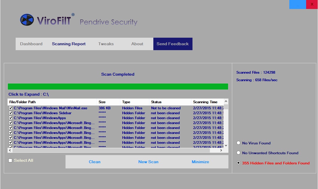 ViroFilT Pendrive Security is designed as a protection tool that can detect files and folders that pose a certain risk of infection to your system. The program runs in the background and can scan a selected drive on demand. You can choose to scan either the local drive, the entire system or a USB drive connected to your computer.
