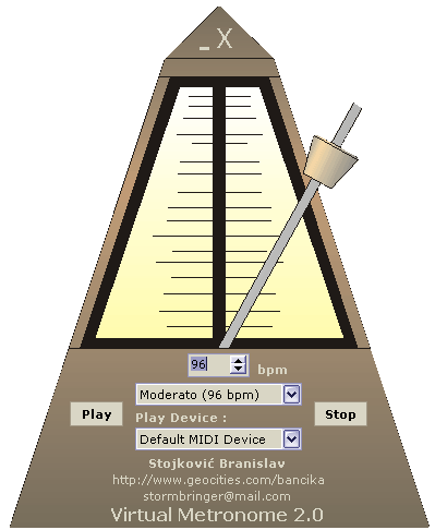 Virtual Metronome a small and useful program that can replace regular metronomes. The program is very interestingly designed and can work with either Midi devices or PC speakers.