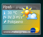 It shows temperature, cloud status, wind direction and speed, and will gradually show the latest news. The data is provided by the Czech company Meteopress, which has been forecasting weather in the Czech Republic and the world since 1992, so it is much more up-to-date and accurate than data in other, foreign gadgets for the Sidebar.